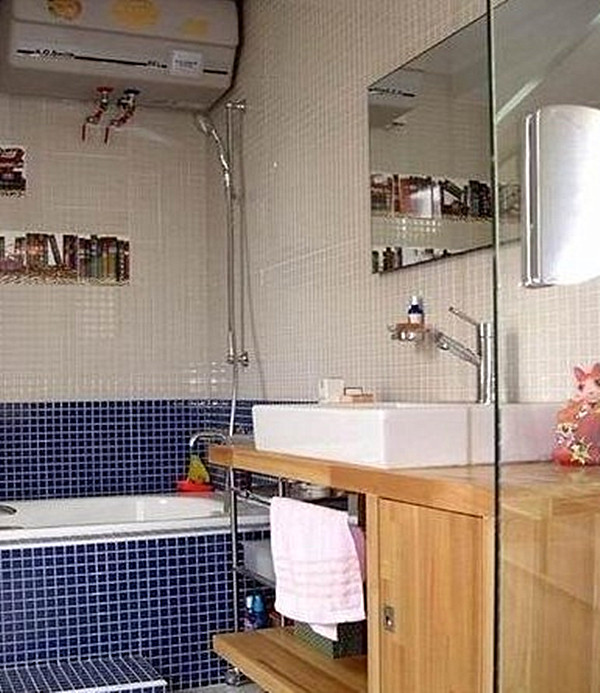 這間衛(wèi)浴搭配的是馬賽克裝飾的效果,非常之適合年輕人的口味,時尚又有極強的視覺沖擊力,跳躍感極強,當(dāng)然最重要的另一點就是它的極其易清理。