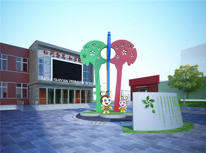 辦學理念視覺化學校的辦學理念包括核心理念、學校宣言、一訓三風等等,這些代表了一個學校價值觀,將辦學理念在校園內(nèi)合適的地方和方式加以展示,對外可以體現(xiàn)一個學校的形象和文化氣質(zhì);對內(nèi),使師生不斷通過視覺刺激而逐漸認同、內(nèi)化本校的價值追求。校前廣場、學校主入口、門廳和主題公園等地方都是展示辦學理念的關(guān)鍵地方。而展示的方式也是多種多樣,雕塑、屏風、理念石、小品、文化墻等都是不錯的選擇,重點是要和具體的情境、場地和環(huán)境條件和諧統(tǒng)一。