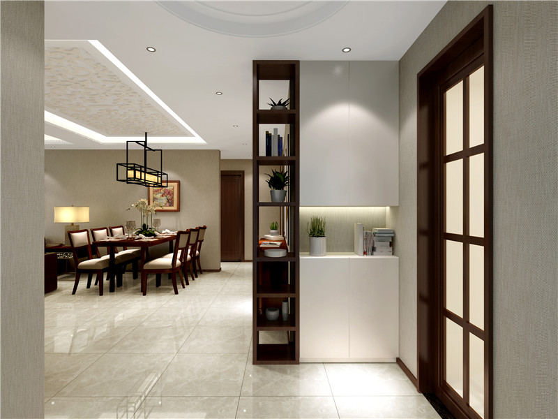 施工工藝:墻布飾面、石膏板造型頂、餐廳吊頂輕鋼龍骨、PVC烤漆云紋圖案、諾貝爾瓷磚、玻化磚、圣象木地板、藝術(shù)吊燈、白色烤漆木飾面。