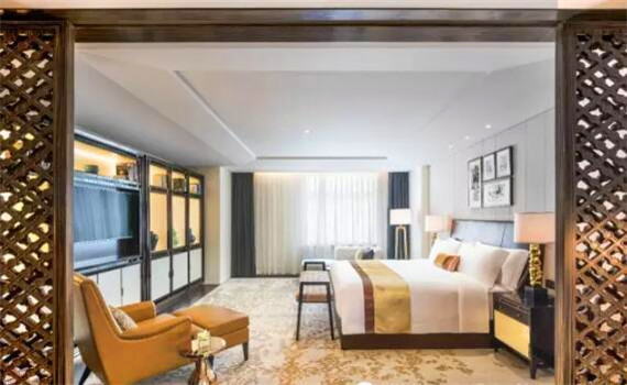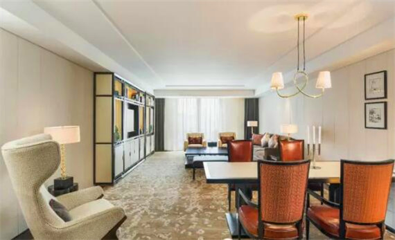 酒店158間客房,從標(biāo)準(zhǔn)客房到總統(tǒng)套房擁有多種寬敞房型??头康牟馁|(zhì)包括皮革、青銅、漆器、絲綢、石材,奠定了華麗的基調(diào)。在家具和紡織品上,我們也反復(fù)斟酌,結(jié)合中世紀(jì)現(xiàn)代設(shè)計(jì)的風(fēng)格,營(yíng)造出古典雅韻的氛圍。
