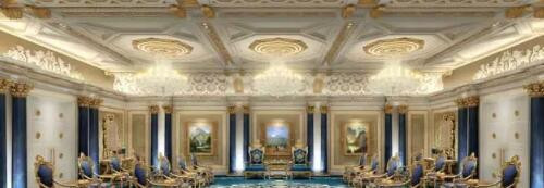 總統(tǒng)套房以高度雕刻及鍍金件的裝飾為主,讓人聯(lián)想到巴洛克時(shí)期??偨y(tǒng)套房的設(shè)計(jì)更是將美輪美奐的滿(mǎn)園花開(kāi)之細(xì)節(jié)達(dá)到頂端。整個(gè)空間內(nèi)的彩繪墻板,天花板裝飾線(xiàn)條給予其住宅的溫馨特征,法式家具提供了一個(gè)溫馨又優(yōu)雅的氛圍。
