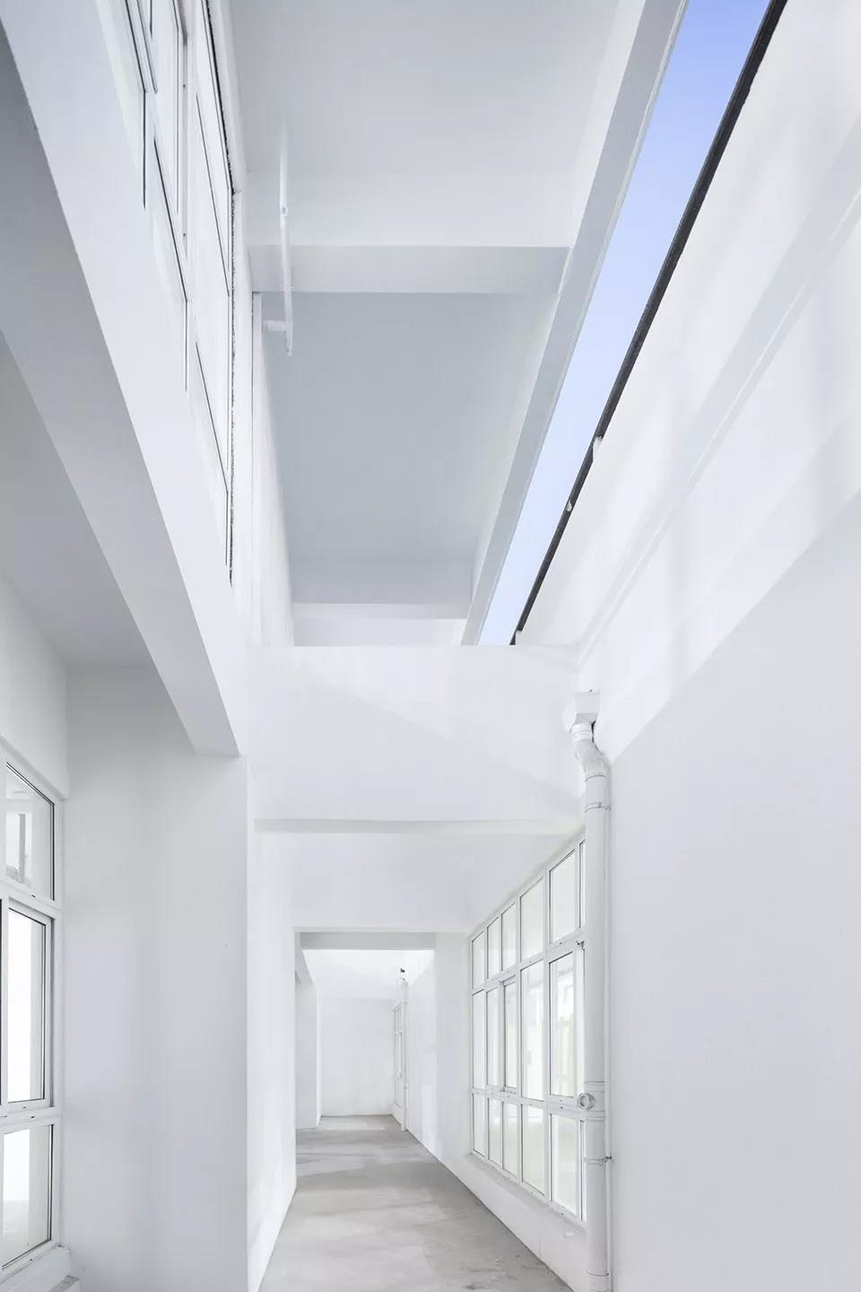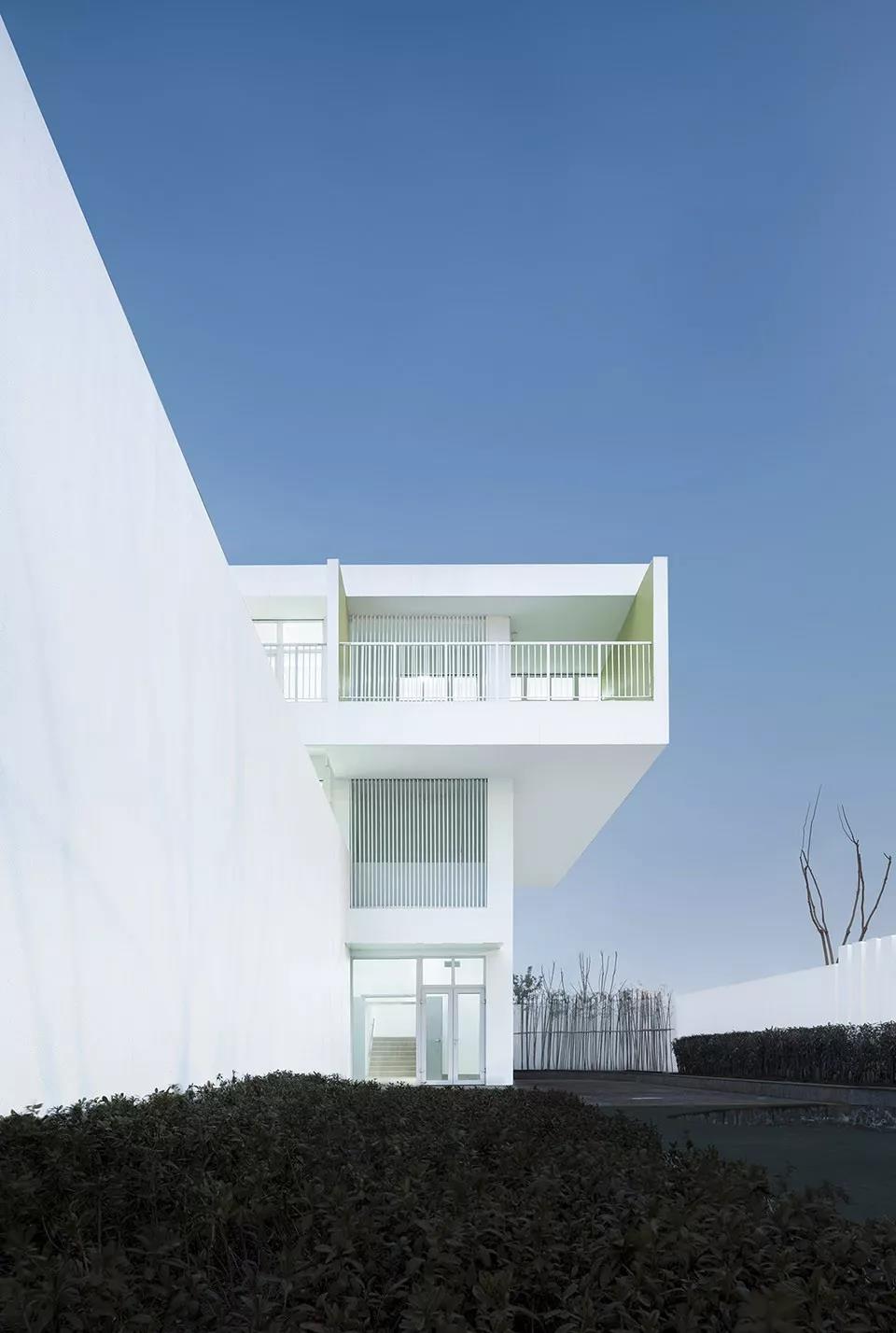 幼兒園進一步把入口層體積退后,讓第二層盒子漂浮在空中,進一步分解體積,讓建筑看上去像只有一層的樣子。