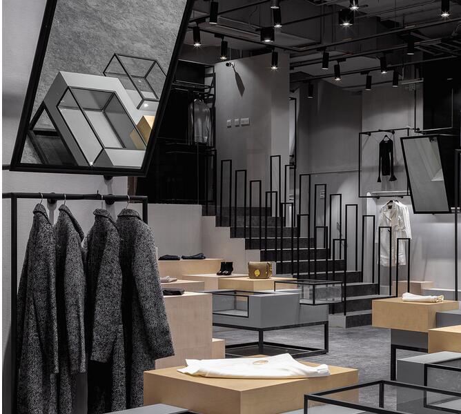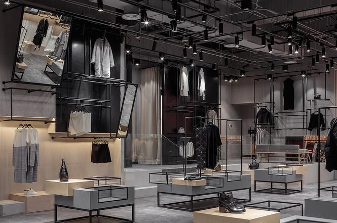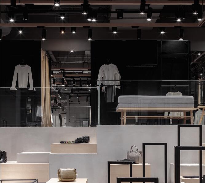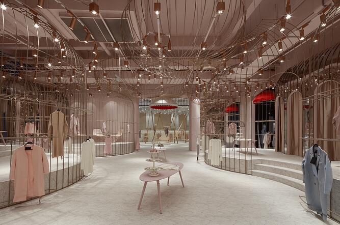 設(shè)計(jì)師整合了女裝品牌四大類型服裝背后的社會(huì)與文化含義通過(guò)四個(gè)空間的不同的設(shè)計(jì)手法來(lái)演繹了女裝背后的穿衣哲學(xué)并且通過(guò)多種陳列的可能性創(chuàng)造了全新的購(gòu)買體驗(yàn)感。