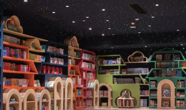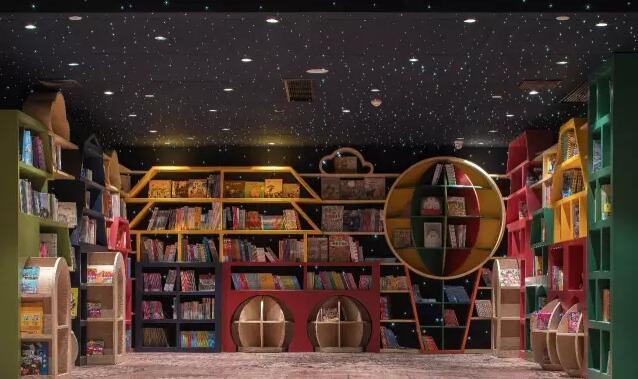 在這間書房的正對面就是兒童繪本館。為了能夠體現(xiàn)孩子天真爛漫的天性,這個鐘書閣中,李想把書架做成了可拆解移動的玩具形式。墻上的書架底部部分都可以自由從墻上分離出來,并同時兼顧擺書臺的功能。當(dāng)需要場地活動時,它們又可以移回墻面歸位到書架里。最奇妙的是,回歸中后的書架形成了揚州的街景圖案。通過這樣的設(shè)計,李想又把揚州的街景文化融入其中。這里的兒童館也采用了五彩繽紛的顏色,這是孩子們的顏色,讓空間充滿了活力,兒童一旦進(jìn)入這個空間,就像來到了一個卡通版的揚州城市一般。從童書館的一個拐角走出,就是一個小巧精致的玩具館,整齊陳列著成人與兒童的各種學(xué)習(xí)用具。這就是豐富多采并秉承著揚州文化故事的揚州鐘書閣!