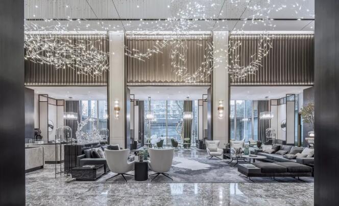 保利天悅銷售中心,位于成都城市核心南二環(huán)東湖區(qū)域,是保利“悅”系頂豪產(chǎn)品。樸悅承接該項(xiàng)目的銷售中心改造。面對(duì)項(xiàng)目服務(wù)特性,設(shè)計(jì)思考更多的是:如何區(qū)別于常規(guī)售樓處單純的展示,以塑造獨(dú)特的空間體驗(yàn),作為銷售道具去發(fā)揮其最大的營銷功能?因此,設(shè)計(jì)以腔調(diào)、個(gè)性、品質(zhì),取代過往售樓處熱鬧張揚(yáng)的場(chǎng)景營造,在目標(biāo)客戶群體參觀過程中介入沉浸式體驗(yàn),讓空間表達(dá)最終回歸到他們的心理感受。