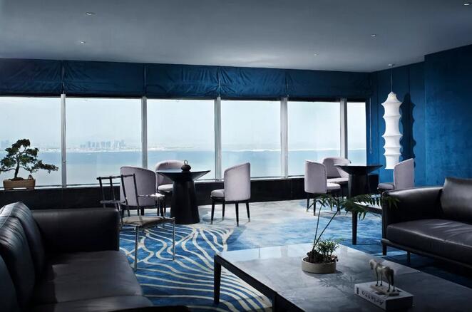 多功能廳內(nèi)靜謐的藍(lán)色大面積渲染墻和地面,無(wú)疑是一道靚麗的風(fēng)景線,純粹如巴勃羅·畢加索的名作《藍(lán)色房間》一般流光旖旎。