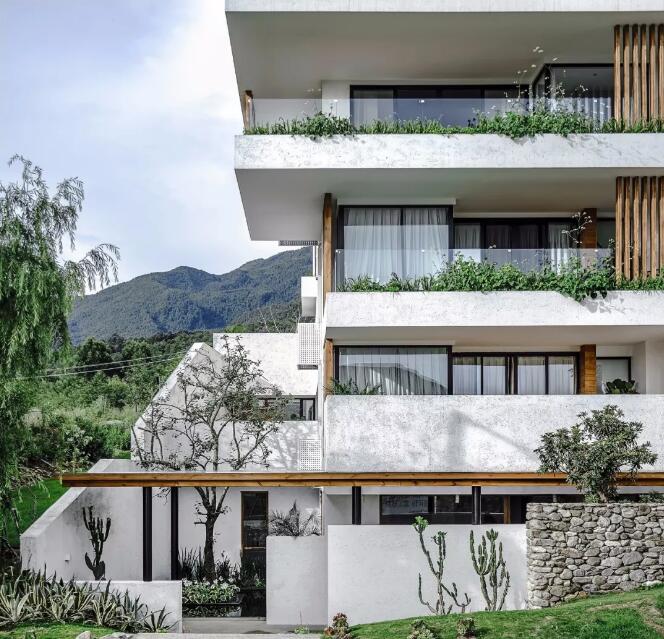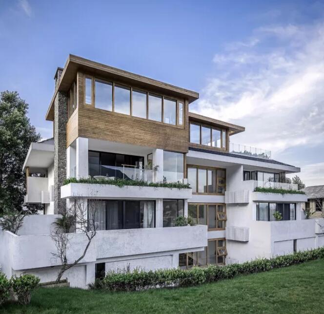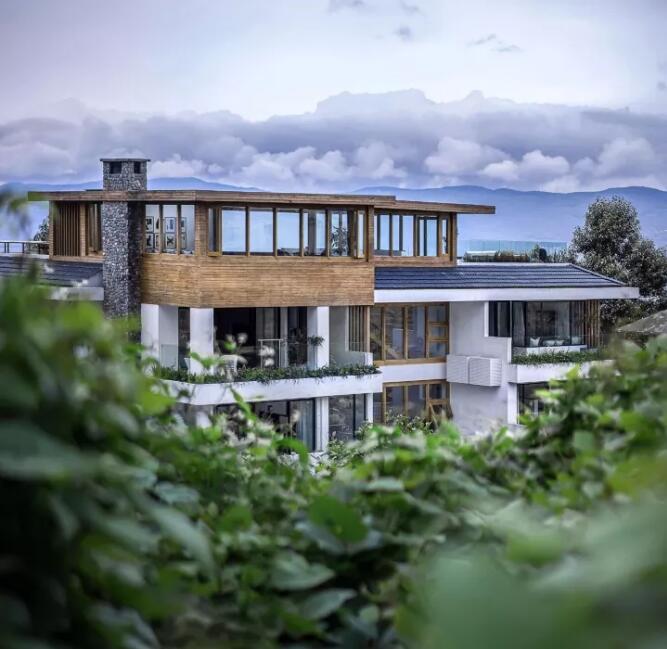 首層以公共空間為主,一到三層則是客房。每間客房都設計有巨大的露臺和落地窗,最大程度將蒼山洱海的絕妙景觀收入房內。露臺向外出挑,各層之間相互錯落,為立面增添些許變化,也令整個建筑顯得更為輕盈。