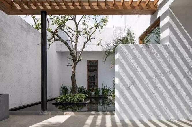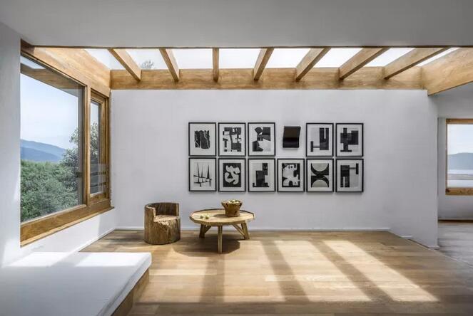 天氣晴好的時候大理的陽光非常干凈純粹,因此光在大理對于建筑的空間是非常重要的因素。拾山房內的許多空間都有對光的設計,巧妙利用陽光在室內形成極其動人的光影變化。頂層的四面玻璃以及天窗,每間客房內面向露臺的落地窗,都是對陽光最好的呼應。而室內設計在物件陳設的設計上也非常細致地考慮了光影的影響,木柜、陶罐和掛飾的幾何關系在光影下顯得格外好看,因此每一個角落的細節(jié)都經得起推敲。