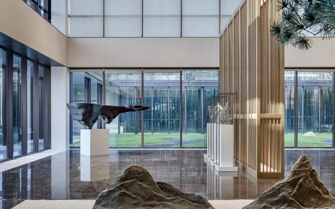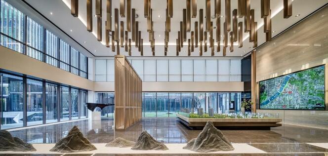 宋代美學(xué)館是主要用作售樓處,但卻巧妙的融合進(jìn)了宋代的美學(xué)元素。在功能區(qū)分上,檀悅宋代美學(xué)館主要包括接待廳,影音室,沙盤區(qū)以及多功能展示區(qū)。整個(gè)售樓處以宋代美學(xué)為主題,融合了杭州獨(dú)有的自然景觀和人文環(huán)境。通過將中國(guó)傳統(tǒng)文化融入建筑細(xì)節(jié)的方式,達(dá)到了室內(nèi)外空間和景觀的融合。