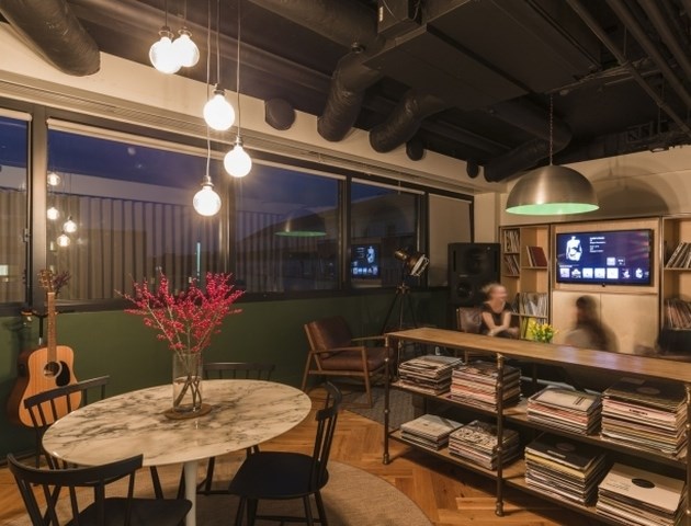 每一層樓都采用低層的照明設(shè)置、裸露的天花板、黑色的可回收木地板,還有黑色的窗戶框,周圍是一圈與眾不同的深綠色飾物。這間新辦公室不僅高端大氣,而且能夠吸引那些大牌的音樂藝術(shù)家前來錄音,這里真是太舒適了。