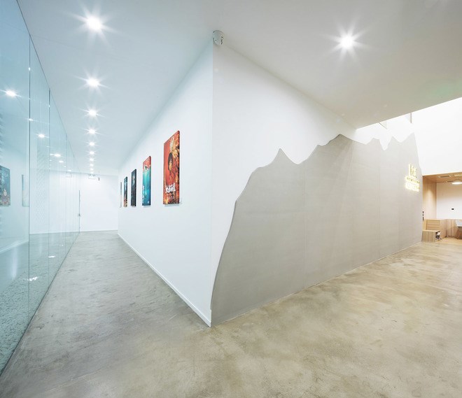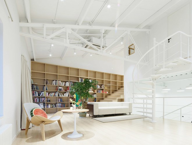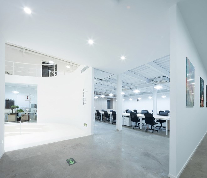 彼岸天總部辦公室位于吉里(北京)國(guó)際藝術(shù)區(qū),其成名作中國(guó)動(dòng)畫(huà)電影《大魚(yú)海棠》2017年于第15屆布達(dá)佩斯國(guó)際動(dòng)畫(huà)電影節(jié)斬獲最佳動(dòng)畫(huà)片。吉里(北京)國(guó)際藝術(shù)區(qū)內(nèi)聚集了各類影視產(chǎn)業(yè)企業(yè),大魚(yú)海棠的新辦公空間選定在9米層高的一座老廠房?jī)?nèi)。新空間保留了老廠房的屋架和外立面的圍護(hù)結(jié)構(gòu),在保持老廠房記憶的同時(shí),重新設(shè)計(jì)了部分辦公空間的外墻,以及全部門窗和基礎(chǔ),植入新的鋼結(jié)構(gòu)進(jìn)行功能體塊分割,達(dá)到新與舊的共融和碰撞。整個(gè)園區(qū)是灰蒙蒙的老廠房,而新空間外墻選用白色基調(diào)一直延伸到室內(nèi),搭配部分木材質(zhì)感,給予通透和純凈的感受。