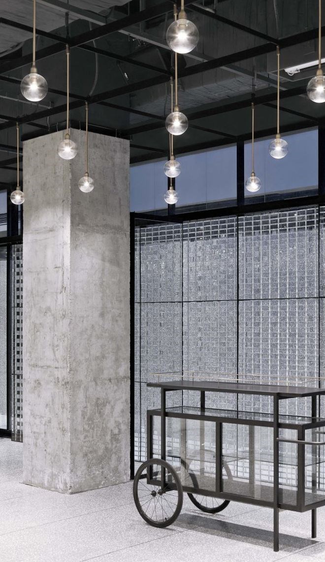 為了充分利用這個(gè)空間優(yōu)勢,設(shè)計(jì)的挑戰(zhàn)在于如何將盡可能多的自然光線帶入室內(nèi),以及如何最大程度減小深處地下的閉塞感受。如恩在設(shè)計(jì)概念中充分地借助了光的作用,引入了充足的自然光,營造通透明亮的空間,并通過置入玻璃磚墻,打造出一個(gè)透明的盒子。