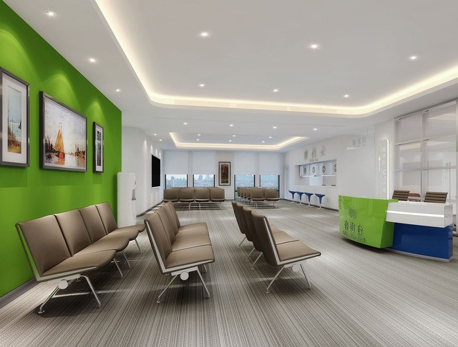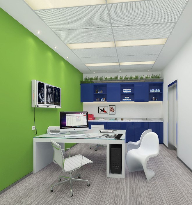 這兩種顏色都屬于可以給患者帶來安靜,平穩(wěn)的心情的顏色,但這兩種顏色又是屬于冷色系,我們不能讓本來就冷冰的醫(yī)院再添加太多冷色系的元素,空間需要有動感,由暖色系來作為主色調(diào)。
