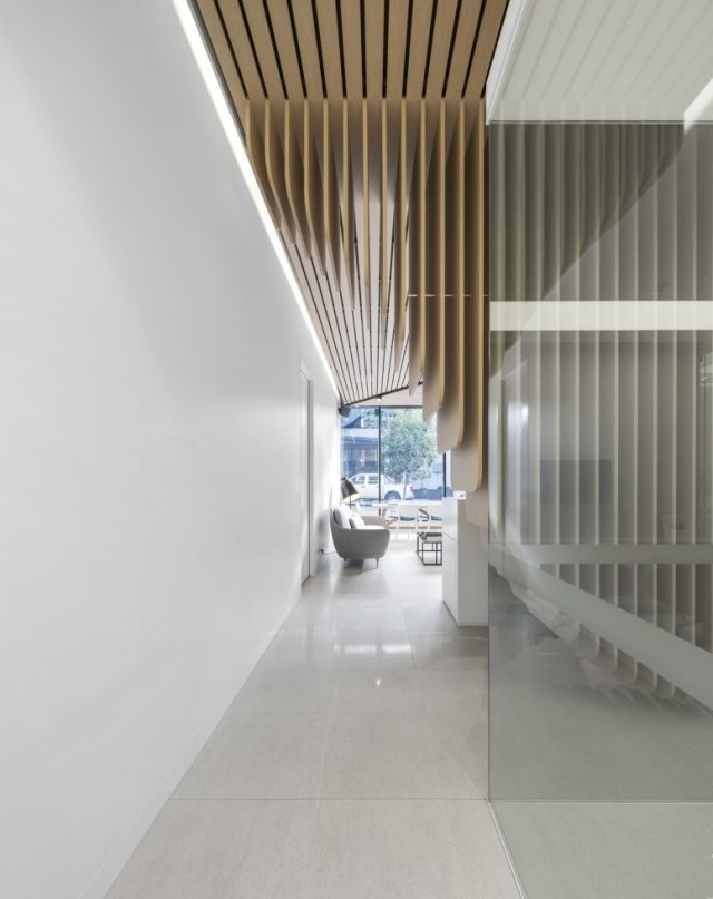 我們應(yīng)邀在悉尼一條銷售高檔產(chǎn)品的商業(yè)街上,設(shè)計一間高端的牙科診所。這是個特殊的項目,因為客戶要求診所擁有分別對應(yīng)的兩個入口和兩個接待區(qū),它們各自的功能完全不同。