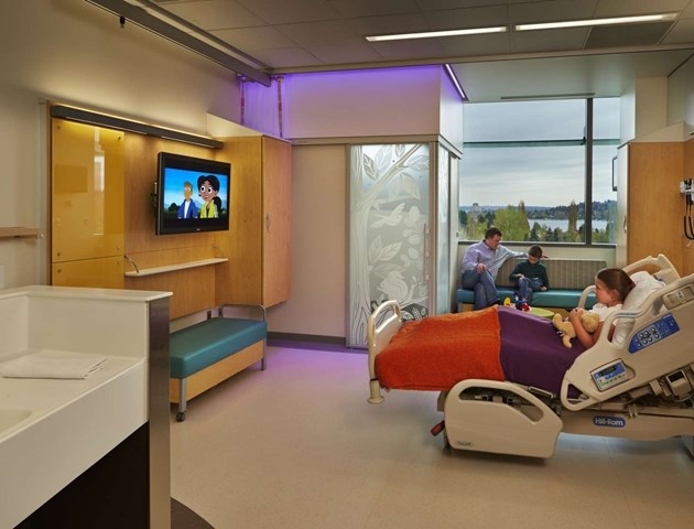 擴(kuò)展的空間十分靈活,給病人提供了安全的治療環(huán)境,同時(shí)也提高了醫(yī)生的工作效率。希望大樓在一樓有急救部門、治療部門還有兩個(gè)癌癥治療中心??偣?0個(gè)床位,能夠擴(kuò)展到192間。第八層是第一批積極對待癌癥的年輕人接受治療的地方。風(fēng)景和室外的元素對他們治療有好處。西雅圖兒童醫(yī)院是美國第一批運(yùn)用精益方法到治療方法上的。兒童在早期接觸這種持續(xù)過程改善方法是在一個(gè)組織內(nèi),通過提高質(zhì)量和安全性達(dá)到最好的治療方案。