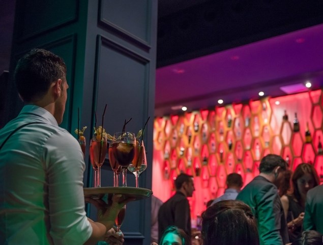 設(shè)計(jì)機(jī)構(gòu)DVAZQUEZ工作室受品牌委托,并在兩個(gè)月的時(shí)間內(nèi)重新做了內(nèi)部設(shè)計(jì)。酒吧里的每一件家具都被以中元紀(jì)風(fēng)格,經(jīng)過獨(dú)特的設(shè)計(jì)。木頭,皮革,銅和訂制的熱帶風(fēng)格墻紙強(qiáng)化了酒吧的格調(diào)。