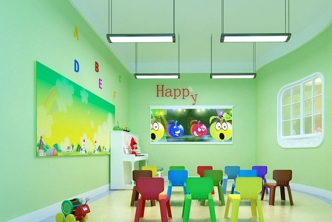 優(yōu)渥國(guó)際英語(yǔ)培訓(xùn)中心裝修設(shè)計(jì)的用色大膽充滿童趣,該培訓(xùn)中心的設(shè)計(jì)中用色較多,比如說(shuō)淡綠色,天藍(lán)色,大紅色。