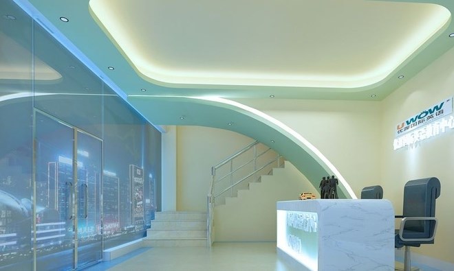 相比之下,培訓(xùn)中心的前臺(tái)用色就比較淡雅,給人一種清新的感覺(jué)。
