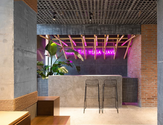 大部分材料都采納于20世紀(jì)的上海本地或者半殖民時(shí)期的建筑,材料在空間上的分布和色調(diào)的平衡更像是在和城市作進(jìn)一步的對(duì)話(huà)。圍繞著以平靜作為整個(gè)設(shè)計(jì)的中心思想,通過(guò)材料、顏色、質(zhì)感以及燈光引導(dǎo)人們進(jìn)入瑜伽的世界。