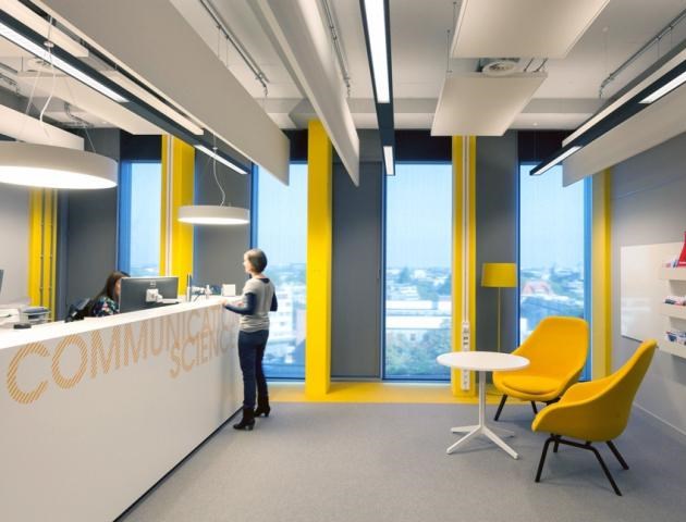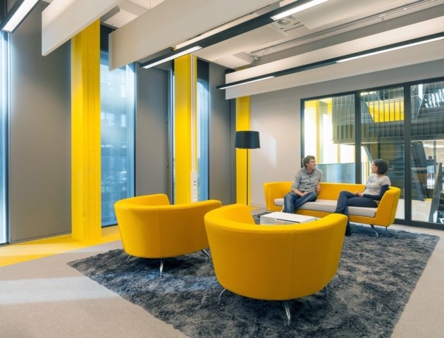 阿姆斯特丹大學(xué)社會(huì)和行為科學(xué)學(xué)院邀請(qǐng)F(tuán)okkema & Partners為他們的新校區(qū)做做室內(nèi)設(shè)計(jì)。這個(gè)新校區(qū)是在戰(zhàn)后由倫敦的AHMM公司負(fù)責(zé)重新改建的,該公司在重建時(shí)給這個(gè)校區(qū)定下的基調(diào)是:根據(jù)專業(yè)不同,分別用藍(lán)灰色、黃色和白色作為主色。
