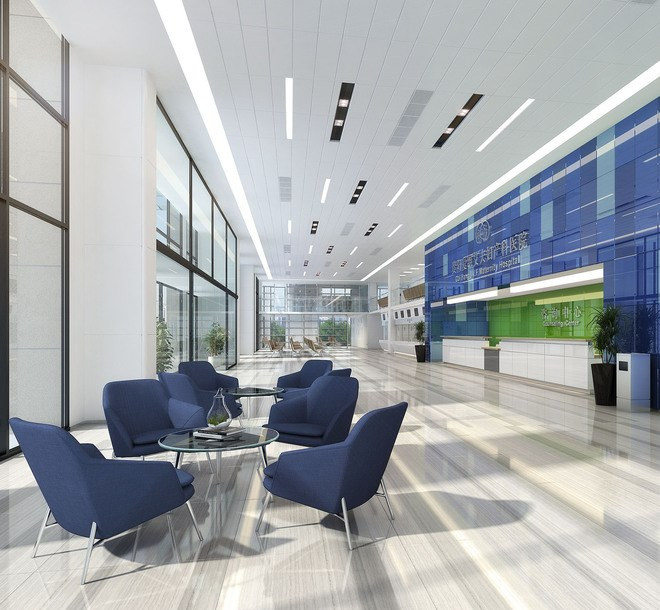 空間設(shè)計(jì)主要結(jié)合企業(yè)文化進(jìn)行更好的闡述,企業(yè)的標(biāo)準(zhǔn)色主要分藍(lán)色和綠色,這兩種顏色都屬于可以給患者帶來(lái)安靜,平穩(wěn)的心情的顏色。