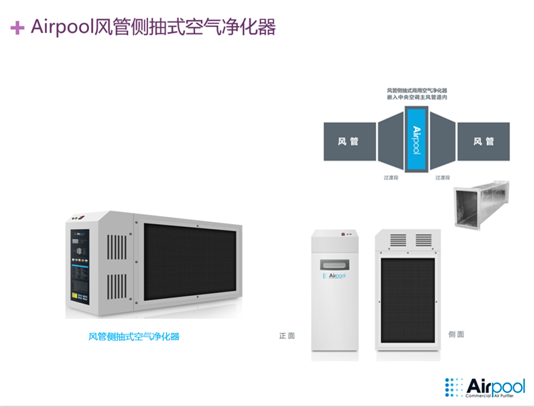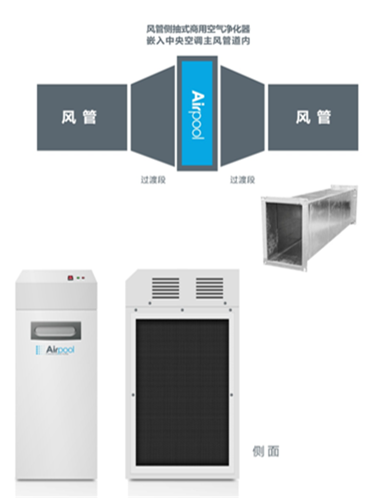 風(fēng)管側(cè)抽式商用空氣凈化器的優(yōu)勢:PM2.5高效凈化,離子箱側(cè)面抽取,清洗維護方便。