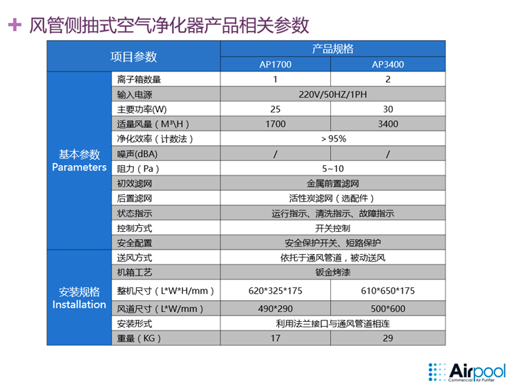 風(fēng)管側(cè)抽式商用凈化器的應(yīng)用環(huán)境,可根據(jù)各類大樓通風(fēng)管道的布局要求,進行主風(fēng)管對接,同時也能與新風(fēng)機組結(jié)合,有效解決室外新風(fēng)帶來的塵埃污染。適用于大型商場,商圈,綜合社區(qū)等大型商用場所。