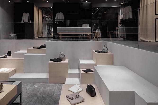 設(shè)計師整合了女裝品牌四大類型服裝背后的社會與文化含義通過四個空間的不同的設(shè)計手法來演繹了女裝背后的穿衣哲學(xué)并且通過多種陳列的可能性創(chuàng)造了全新的購買體驗(yàn)感。