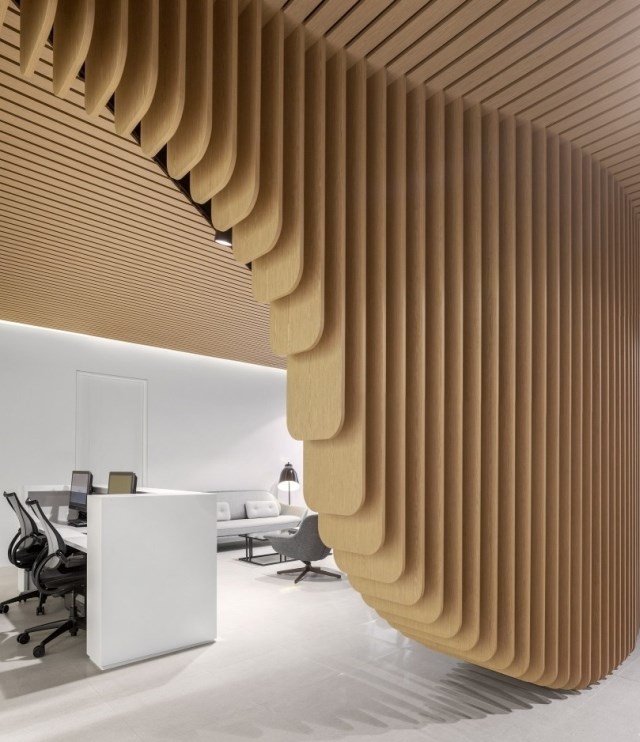 同時(shí),不能讓室內(nèi)顯得局促,還不能擋住路人們的視線。為此,我們特意在兩個(gè)接待區(qū)之間設(shè)置了一個(gè)木制雕塑,作為二者之間的隔斷。在診所的另外一端,是進(jìn)行高級口腔手術(shù)的手術(shù)室。